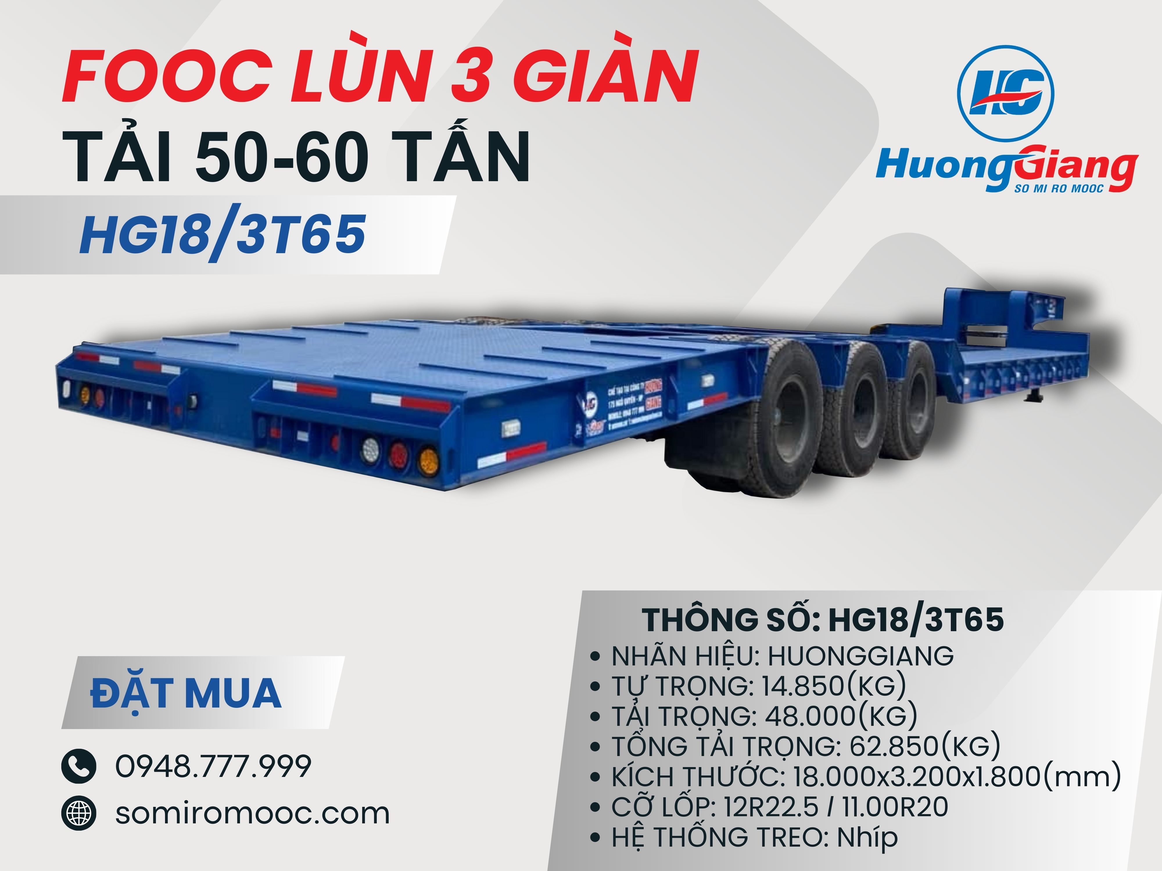 Fooc lùn 3 giàn sàn võng tải 50-60 Tấn chuyên chở máy công trình, hàng siêu trường siêu trọng - HG18/3T65